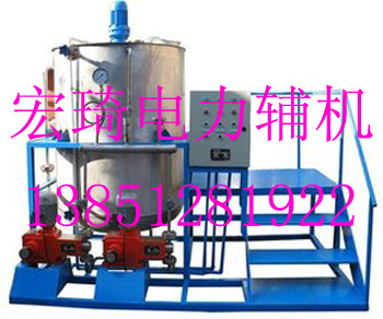 为发展我国的水处理环保事业,我厂开发研制:给水加联胺装置、定量注入装置、示踪剂加药装置、磷酸盐加药装置、水质稳定装置、自动加药装置、智能加氨装置。等等。磷酸盐加药装置主要由溶液箱、计量泵、安全阀、液位计、针型阀、球阀、搅拌器、Y型过滤器、底盘等部件组成。本装置适用于火力发电厂300MW及以下机组气包内加磷酸盐处理,为二台炉用一套设备,共设三台加药泵,其中一台为备用,为单元制运动。