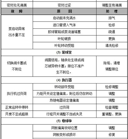 企业为了为改善回路控制效果,提高胶球清洗装置自动控制水平,降低操作人员劳动强度,发现了一些厂家生产的胶球清洗装置中一些胶球无法投自动,有些回路虽然投用自动,但由于控制参数及控制器形式设置不合理,造成被控变量或控制器输出大幅度波动,不利于胶球清洗装置的平稳运行,操作人员的劳动强度也较大。 针对以上问题,宏琦公司对胶球清洗装置出现在问题进行分析,实现全自动胶球清洗装置自身节能降耗作用,节省经济。故障及处理: